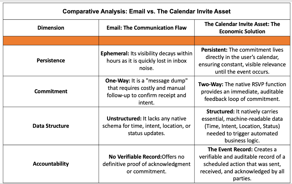 Comparative Analysis: Email vs. The Calendar Invite Asset